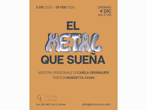 La galleria Gilda Lavia di Roma, Via dei Reti, 29/c, ha il piacere di ospitare El metal que sueña, seconda mostra personale dell’artista argentina Carla Grunauer che inaugurerà giovedì 4 dicembre alle ore 17.30.