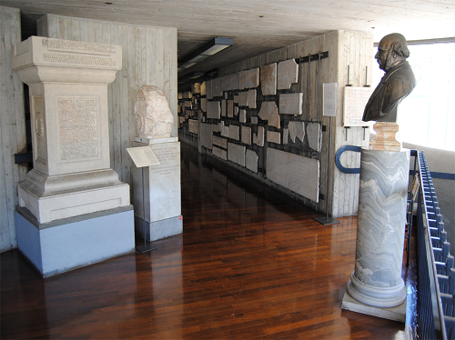 La collezione del Lapidario Cristiano, ricca di oltre duemila iscrizioni, deve il suo allestimento all’archeologo Giovanni Battista de Rossi (1822-1894), che nel 1854, sotto papa Pio IX, condivise con il proprio maestro, il gesuita Giuseppe Marchi (1795-1860), la nascita della collezione paleocristiana, esposta allora nel Palazzo Apostolico Lateranense. In essa confluirono, oltre a molti esemplari delle raccolte già esistenti in Vaticano, iscrizioni provenienti da chiese, conventi urbani e dagli scavi nelle catacombe romane. Si tratta principalmente di iscrizioni funerarie incise su supporti marmorei, ma non mancano differenti tipologie, comprese, ad esempio, alcune iscrizioni dipinte su marmo o laterizio, oppure impresse tramite timbri (signacula) sull’argilla cruda di mattoni e recipienti. Trasferita in Vaticano nel 1963, la collezione fu riallestita da Enrico Josi e inaugurata nel 1974, rispettando la sistemazione in pareti già adottata da de Rossi, nell’ulteriore suddivisione in tre classi: iscrizioni storiche, riguardanti i monumenti pubblici e gli edifici di culto, comprese le epigrafi poetiche dette “damasiane” dal papa Damaso che le dettò (366-384), e quelle datate; iscrizioni dogmatiche, con riferimenti cioè ai contenuti della fede, ma anche ai diversi aspetti della gerarchia, della società e della famiglia cristiana; iscrizioni abbinate a simboli e figure, distinte in raffigurazioni alludenti a significati religiosi e iconografie legate al mondo dei mestieri e della realtà quotidiana. Seguono epitaffi selezionati per esemplificare l’utilizzo di espressioni interessanti e originali e, infine, alcuni gruppi topografici cimiteriali più rilevanti. Della collezione è attualmente esposta al pubblico solo una parte delle iscrizioni dogmatiche e di quelle datate, assieme agli epitaffi di Abercio e Quirinio, vegliate idealmente dal busto bronzeo di de Rossi presso la rotonda che si affaccia sul mosaico delle terme di Caracalla.